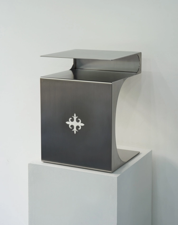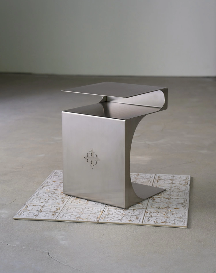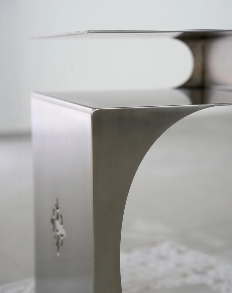 Undress House Side Table is a minimalist piece that reflects the initial design concept of Undress House. Crafted from stainless steel with a sleek and unembellished form, this table features clean finishes and graceful curves. The soft curvature on the sides adds a sense of fluidity to the cold, rigid texture of the metal, achieving a harmonious balance between form and material.